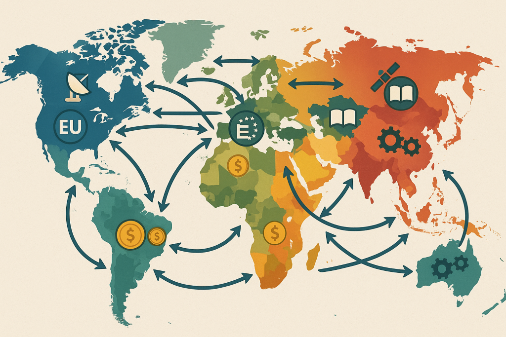 Em termos de governança, novas instituições e coalizões vêm ganhando força. A Organização de Cooperação de Xangai, por exemplo, já abrange mais de 40% da população mundial e atua em temas como segurança, energia e conectividade regional. O BRICS+, com sua ampliação recente, passou a representar mais de 45% da população global e uma parcela significativa do PIB mundial, superando o G7 em paridade de poder de compra. Essas iniciativas visam criar uma governança internacional mais representativa, na qual os países do Sul Global tenham maior voz e protagonismo.
